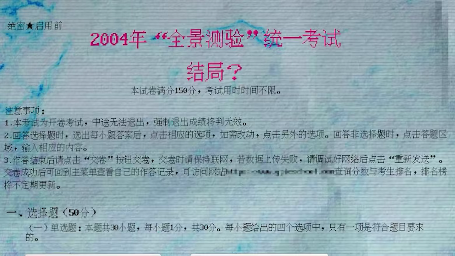 在满足相应条件后,你可以选择进入系统的终测环节。终测为一套包含选择、简答、写作等题型的完整大型测试,原试题目的是对测试员的系统熟练度进行考试并收集测试数据,并作为系统正式大规模使用后官方操作员的选拔依据。我们已将试题内容修改为和NPC与系统高度相关的内容(不影响参与安全员选拔排名),请记忆你曾经的观察和阅读,一旦开始测验将无法返回。