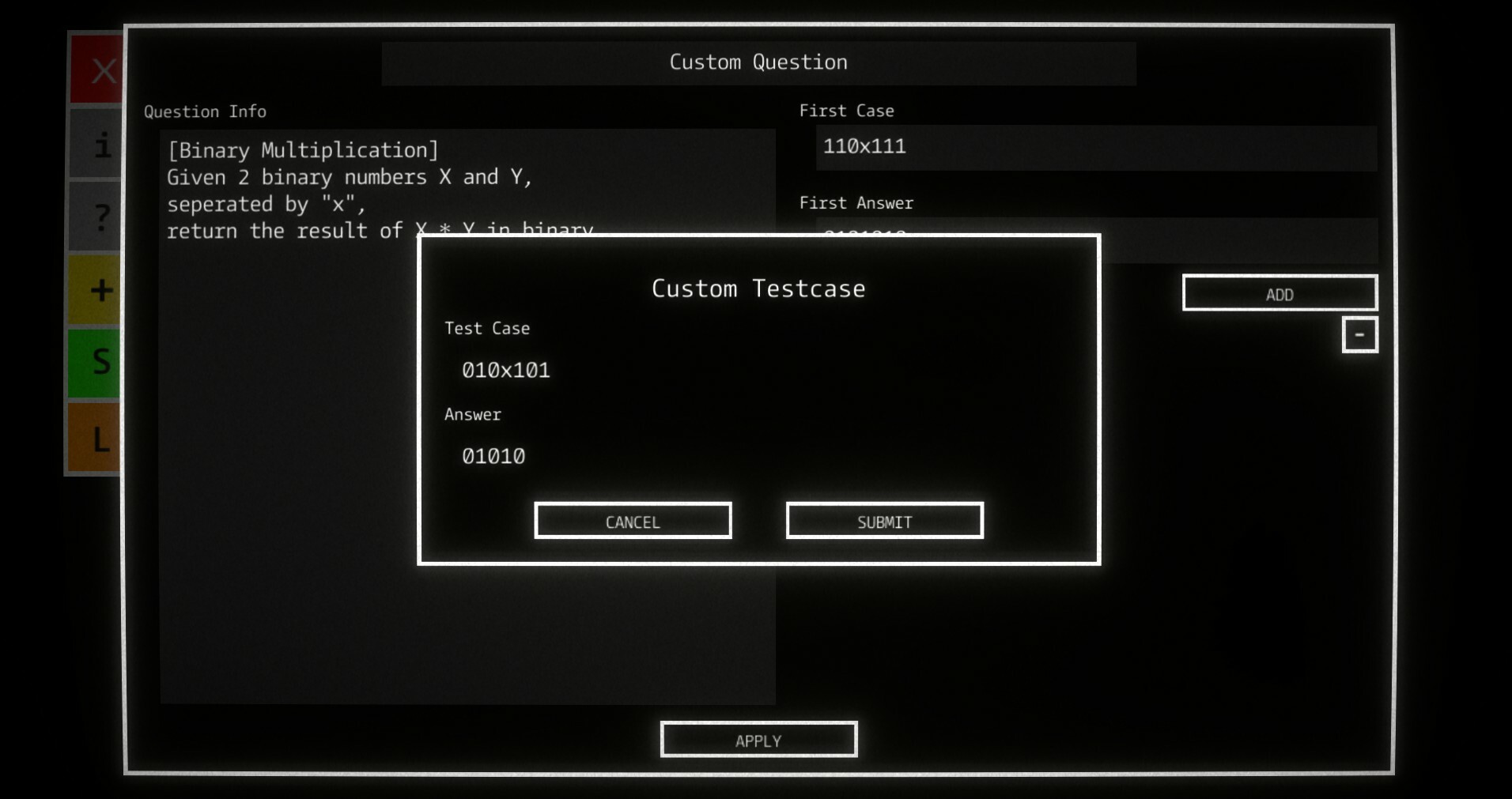 《DA-VI-NC1》是一款使用基于图灵机设计之程式语言的解谜游戏。 游戏中包含: - 超过 30 个使用 DA-VI-NC1 语言的谜题和验证码测试题。 - 与蒙娜丽莎探讨哲学。 - 沙盒模式以及自订题目模式。
