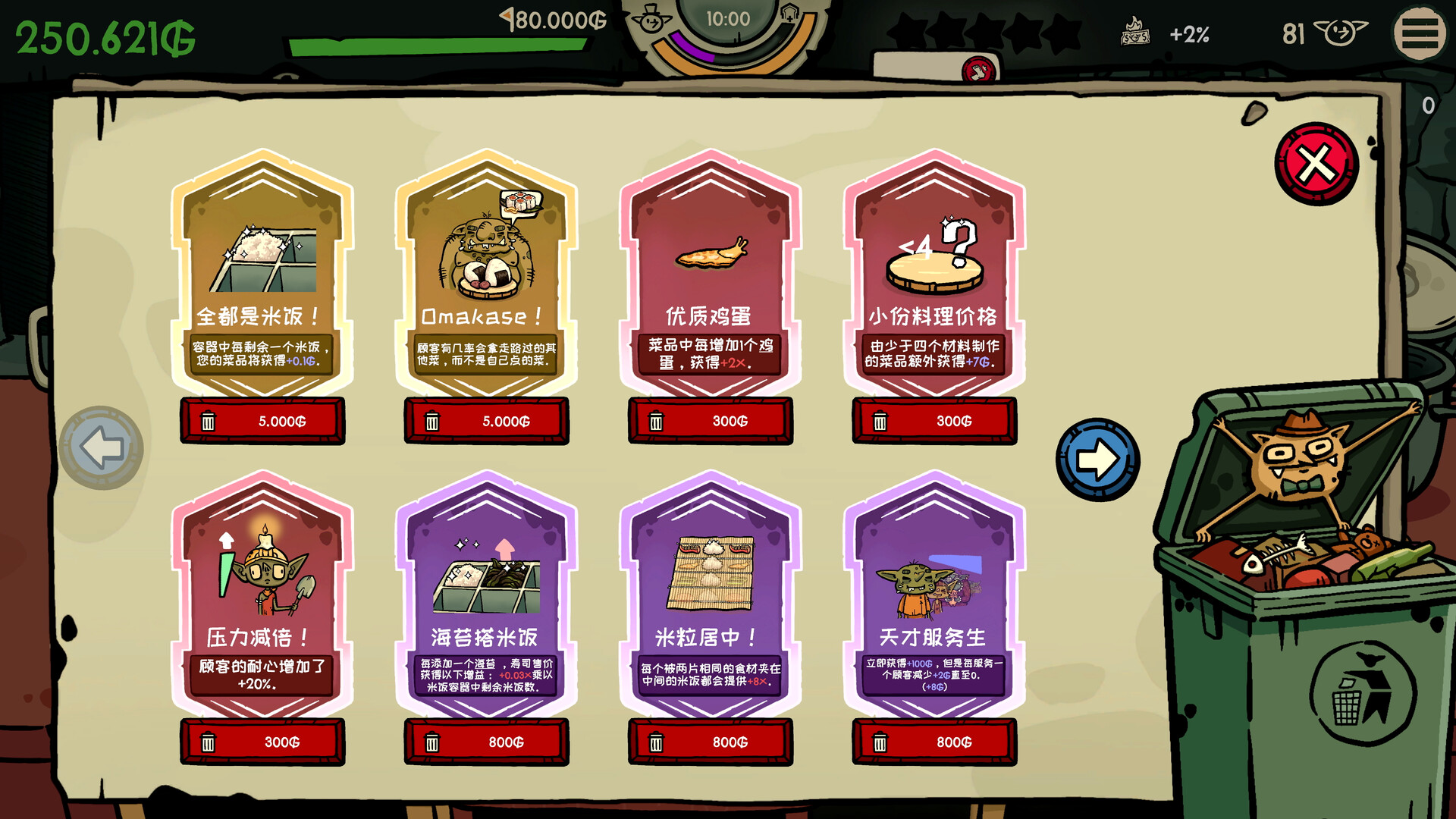 升级你的餐厅、菜单,最重要的是现金流!折腾强力的寿司连锁组合,给电饭锅疯狂加速,或者干脆摆烂,直接端上精致的便便。