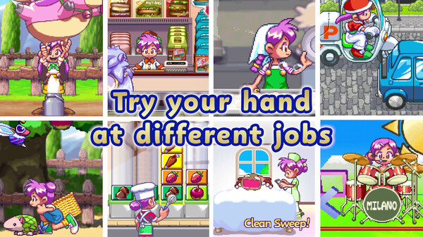 帮助米拉诺在 8 种独特的小游戏中赚取报酬,包括以护士身份治病、在果园接住落下的水果等。傍晚提升她的技能、心情和体力,可以解锁更多兼职与更高难度。挑战越大,报酬越高!