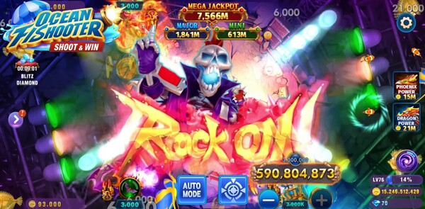 - 摇滚舞台: 跟着摇滚骷髅的节奏!在充满声光震波的舞台上尽情扫射,体验最疯狂的捕鱼之夜!