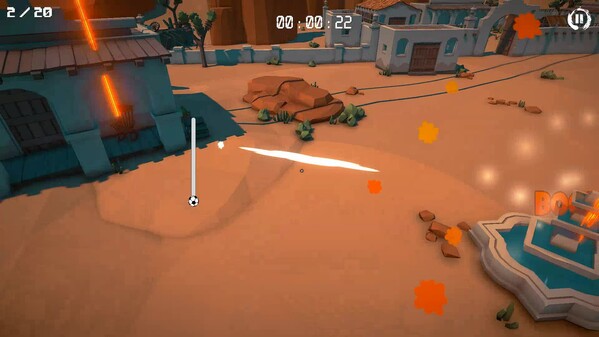 地图上,一些物体被红色光束标记,射向天空。玩家必须找到这些物体并用足球将其摧毁才能完成游戏。
