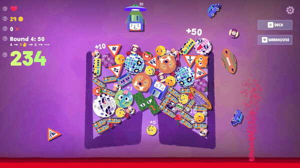 《史蒂夫的仓库》灵感来源于《合成大西瓜》和牌组构建式类 Rogue 游戏(例如《弹球哥布林》、《幸运房东》和《小丑牌》)。让物理引擎自由发挥,创造出最爽快的连锁和最搞笑的死局吧
