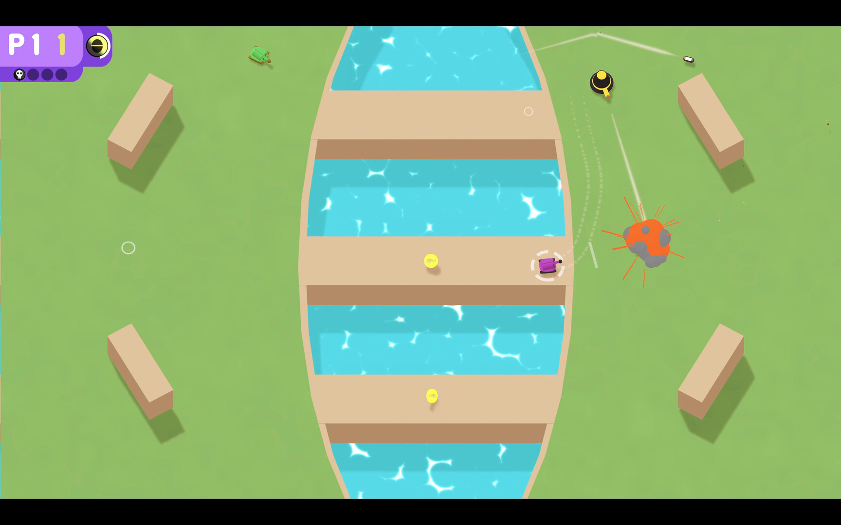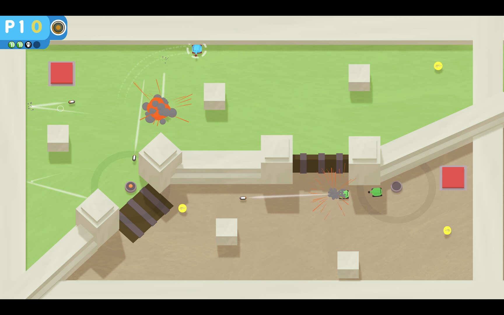 你可以使用积累的金币在每轮之间升级坦克的武器、装甲和特殊能力。