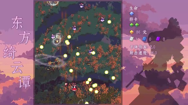 击败你的敌人,获取掉落的符卡来强化你自己的机能(或者卖掉)。除此之外对原作框架进行了一定的改造,大幅修改了资源收集和使用逻辑。可以使用回避动作或者躲进屏幕外来躲避敌人的攻击。