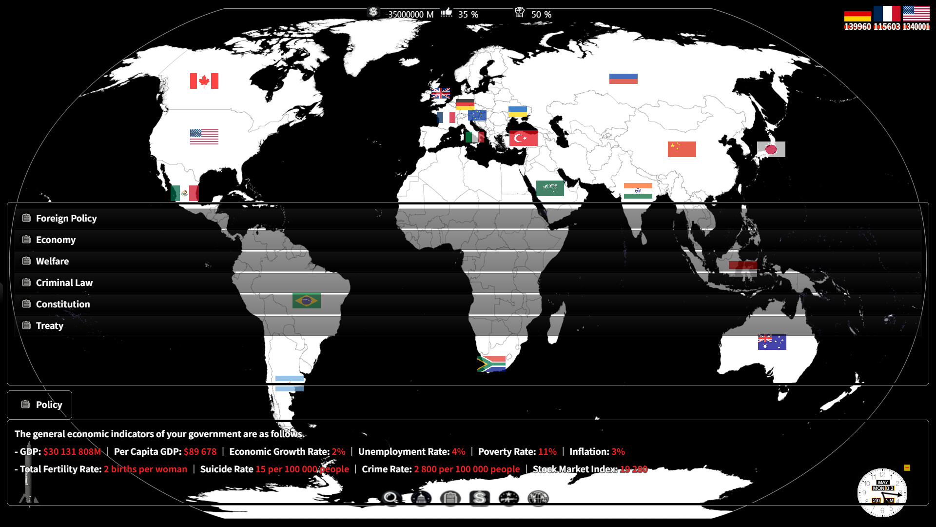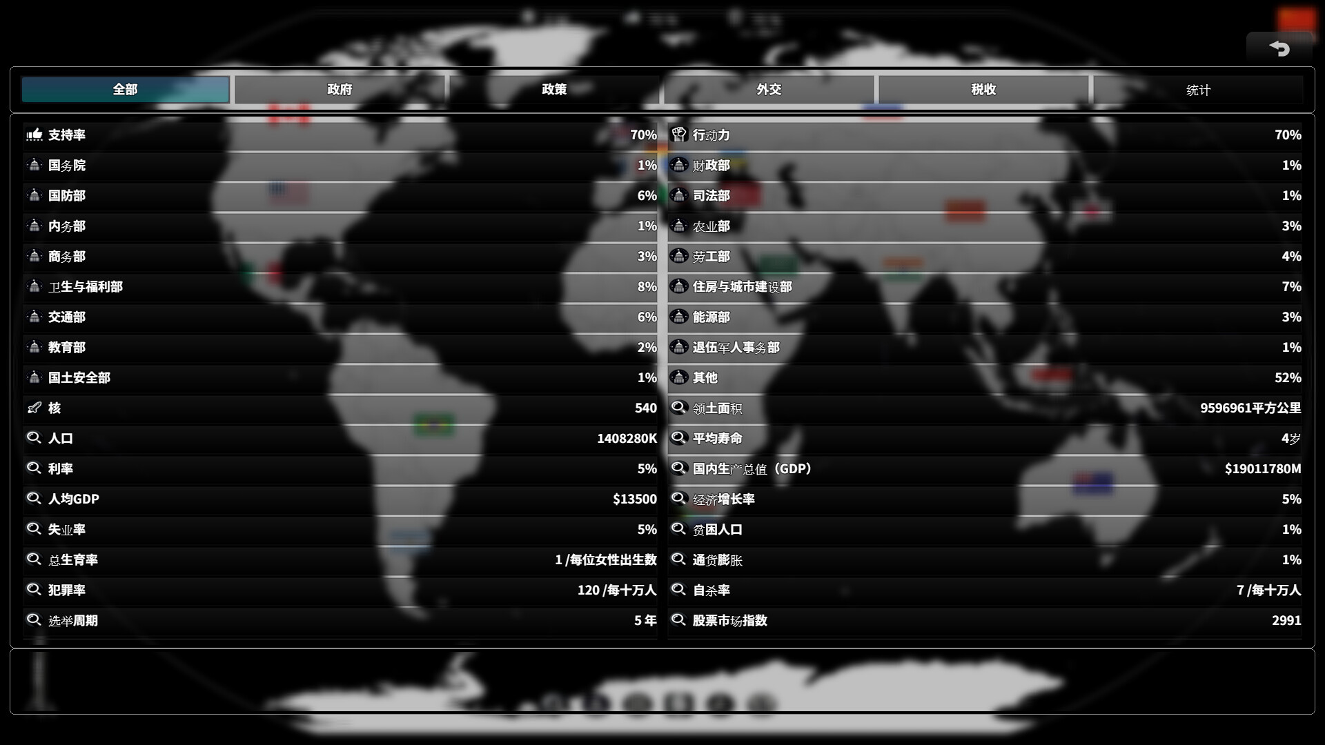 扮演总统(或首相),管理政府、政策、税收、军事和外交。