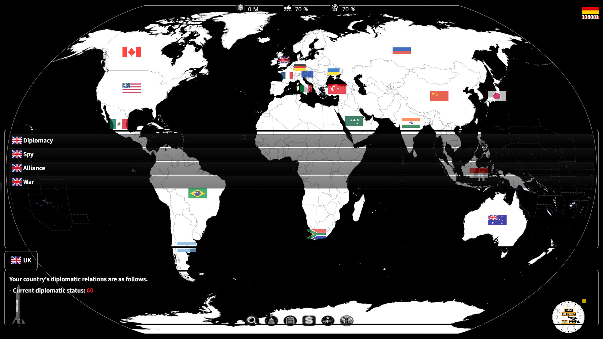 - 与其他国家谈判或派遣间谍。